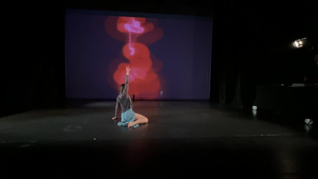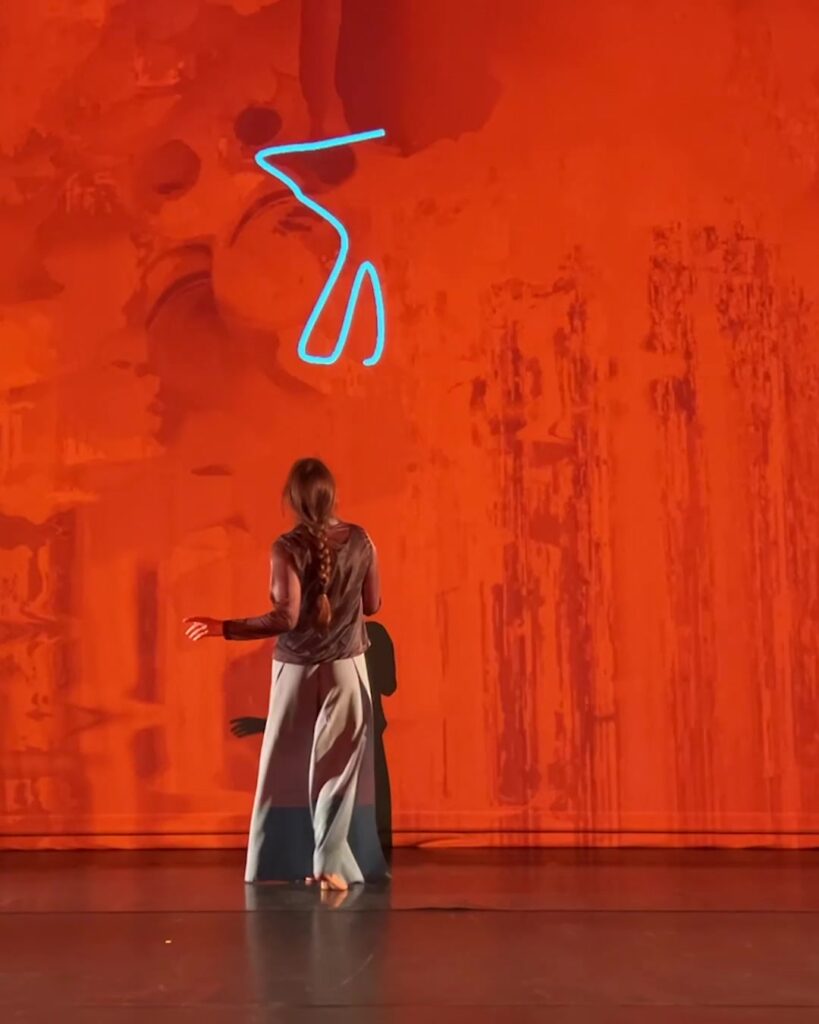 A performance for Lab.30 Media Art Festival Augsburg 2024. Two cameras track the dancer's movements in realtime, a TouchDesigner system translating them into abstract projections: lines, flowing gradients, and eruptive fields of colour.